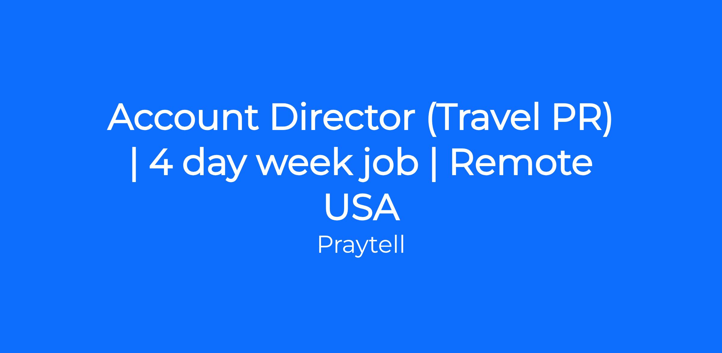 Praytell is seeking an Account Director with 7-9 years of experience and deep expertise in the travel and tourism industry - bonus points for big airline experience - ideally within a PR agency setting. This role will lead integrated communications programs across earned, influencer and social, serving as a senior strategic partner to clients and guiding brand storytelling, campaign development and cross-channel initiatives that drive measurable business impact. The Account Director will oversee multiple client relationships and large-scale accounts with substantial budgets, mentor teams and ensure work is executed at the highest level while identifying opportunities for innovation, growth and long-term partnership. This role must be based in the Central or Eastern time zone. The ideal candidate brings strong business acumen, creative thinking and the ability to navigate complex client environments while delivering thoughtful counsel and forward-thinking ideas.