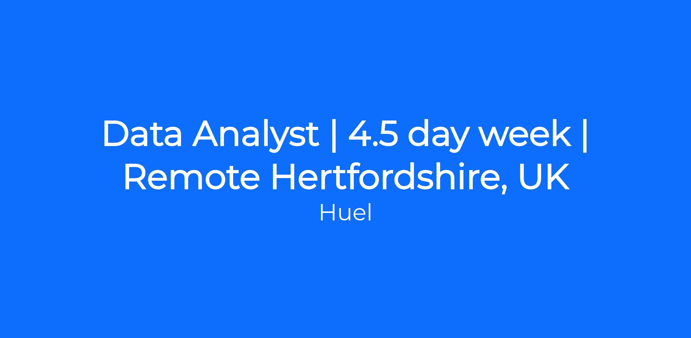 We invite you to read the advert below for our new Data Analyst position to understand the role, and explore our 7 Huel values before applying to ensure we have the right working environment for you!