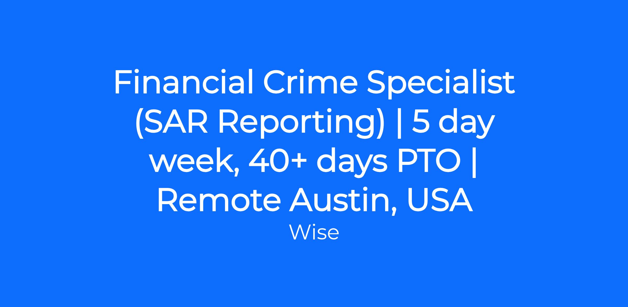We’re looking for a Financial Crime Specialist (SAR Reporting) to join our Austin, TX team and help protect millions of customers around the world.