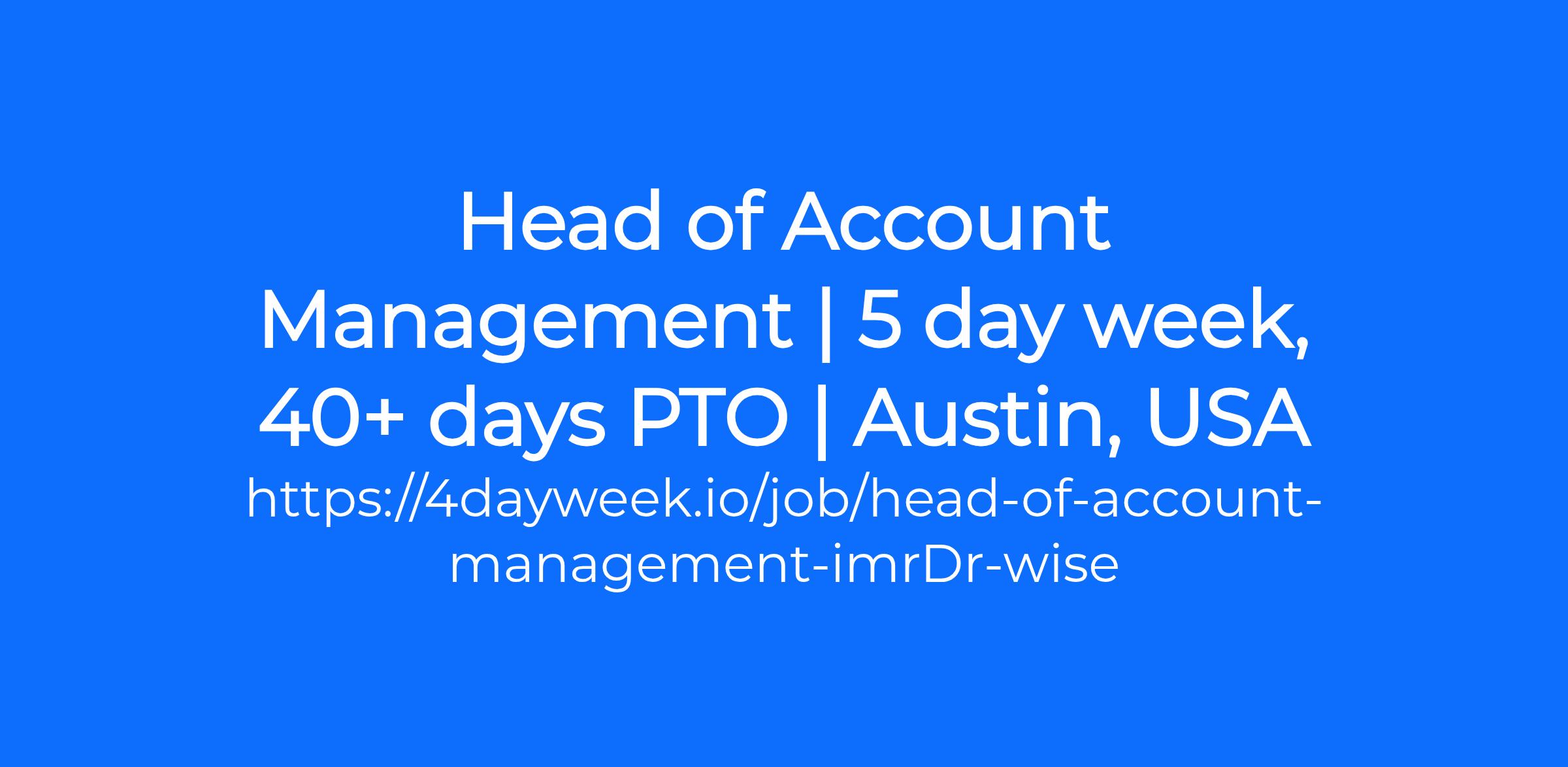 Make an Impact - At Wise, this isn’t just a job—it’s a revolution. As Head of Account Management for North America, you’ll play a pivotal role in shaping the future of the team, establishing a foundation for growth, and helping your team unlock their full potential.