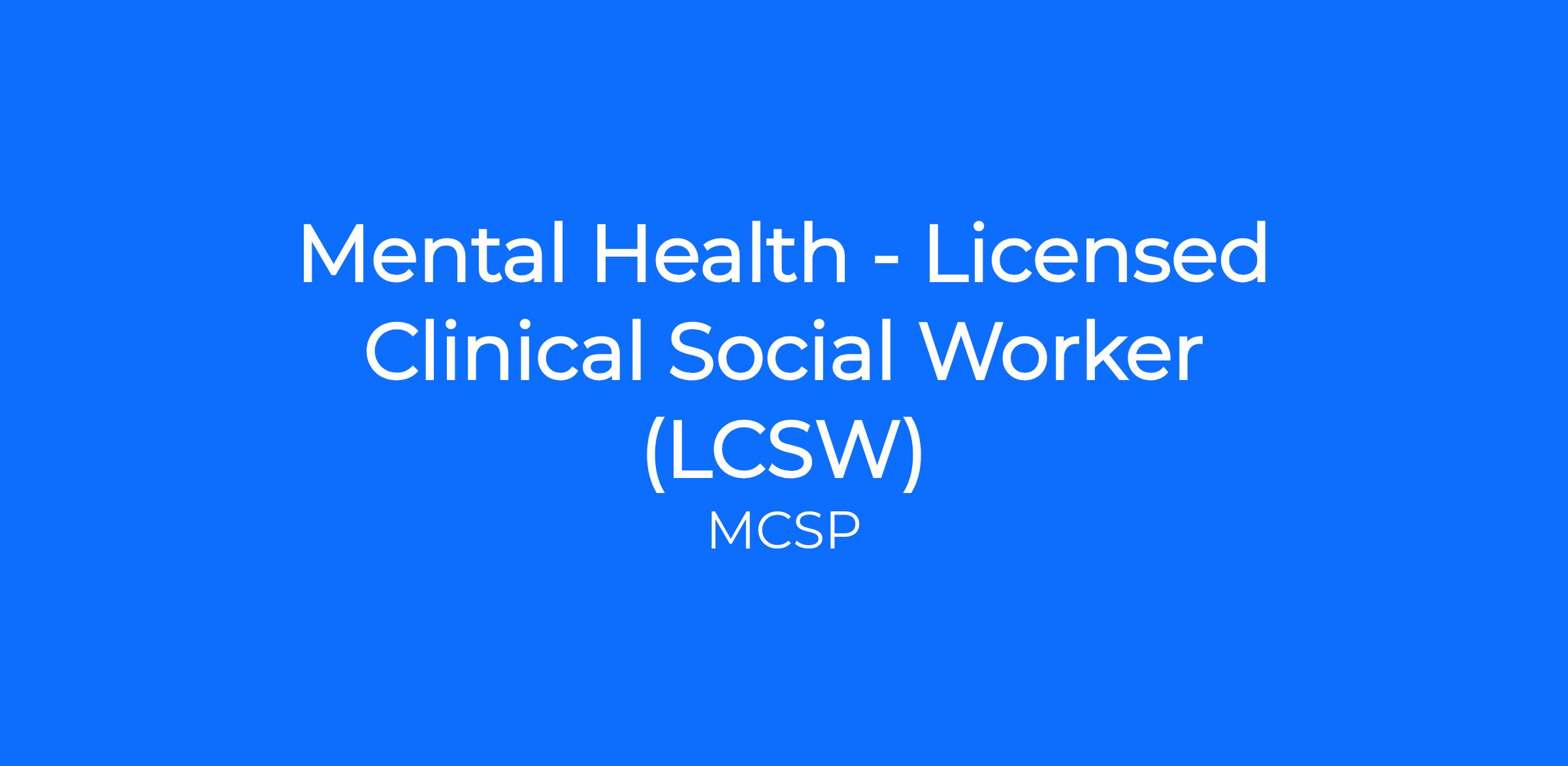 Mental Health - Licensed Clinical Social Worker (LCSW)
