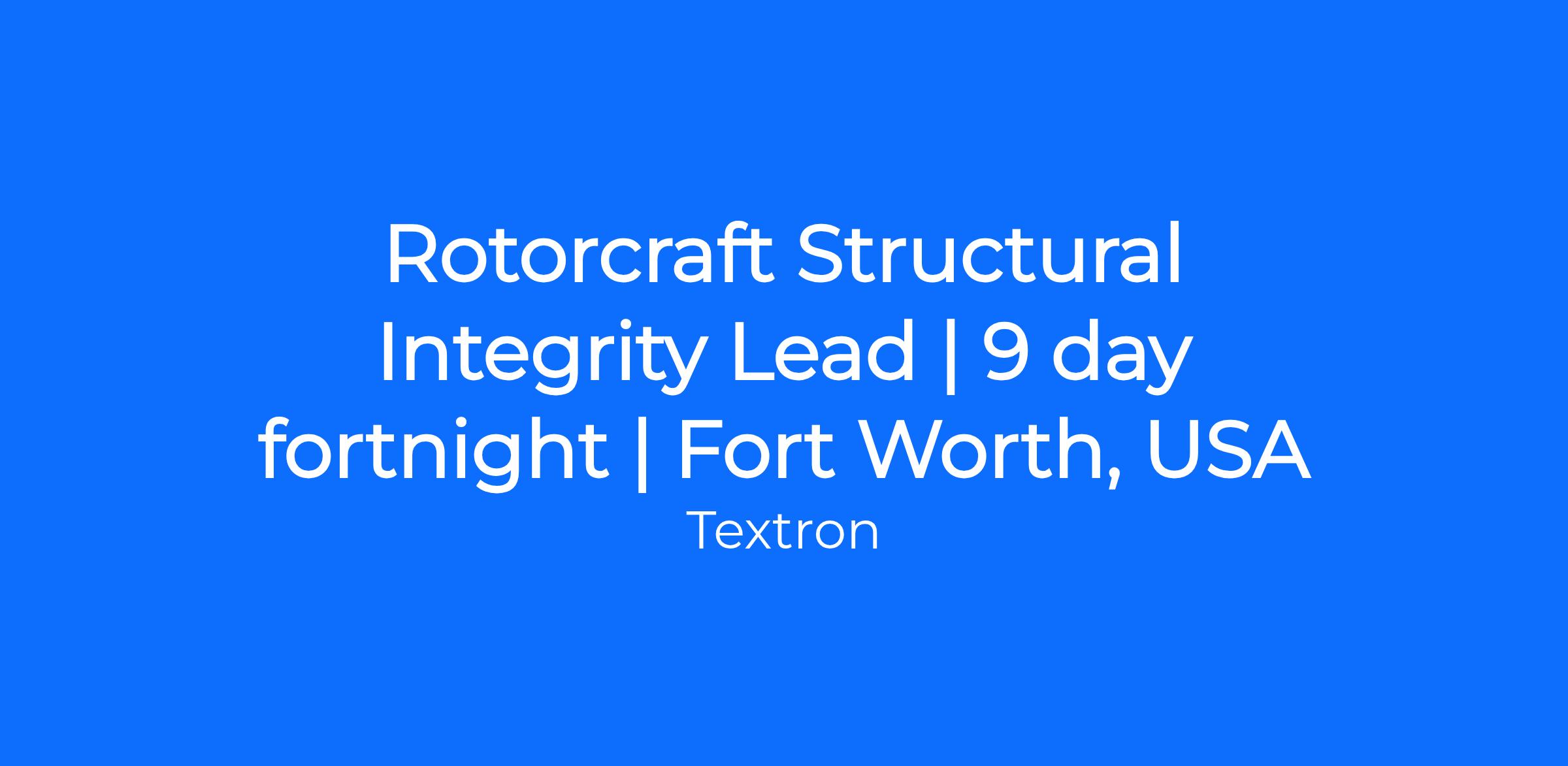 Rotorcraft Structural Integrity Lead