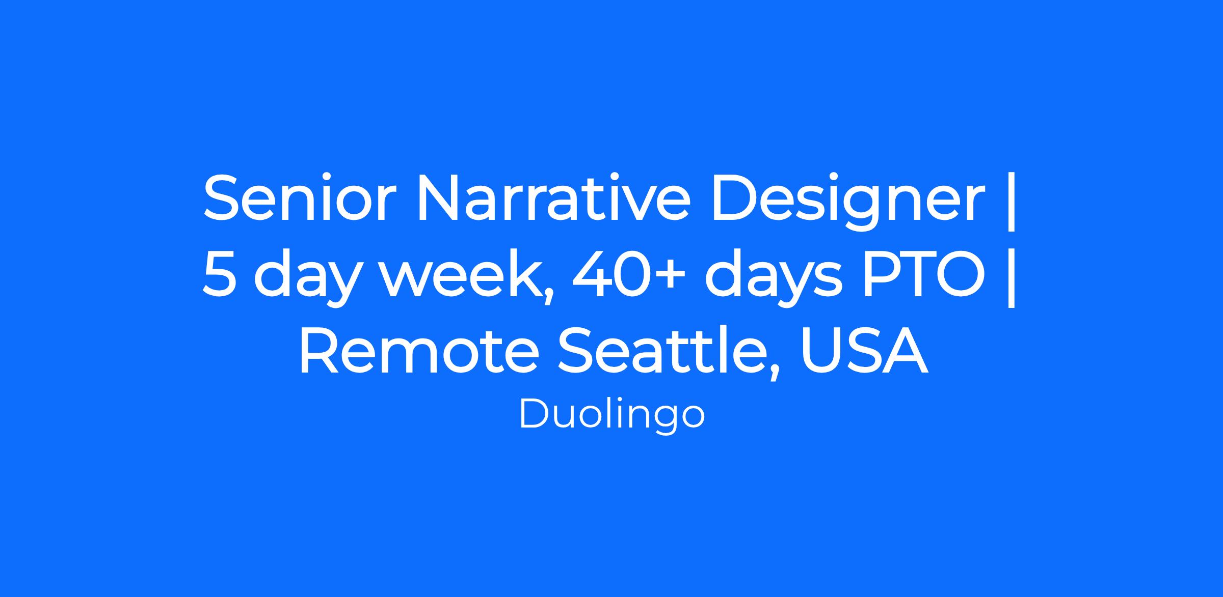 Senior Narrative Designer | 5 day week, 40+ days PTO | Remote Seattle, USA