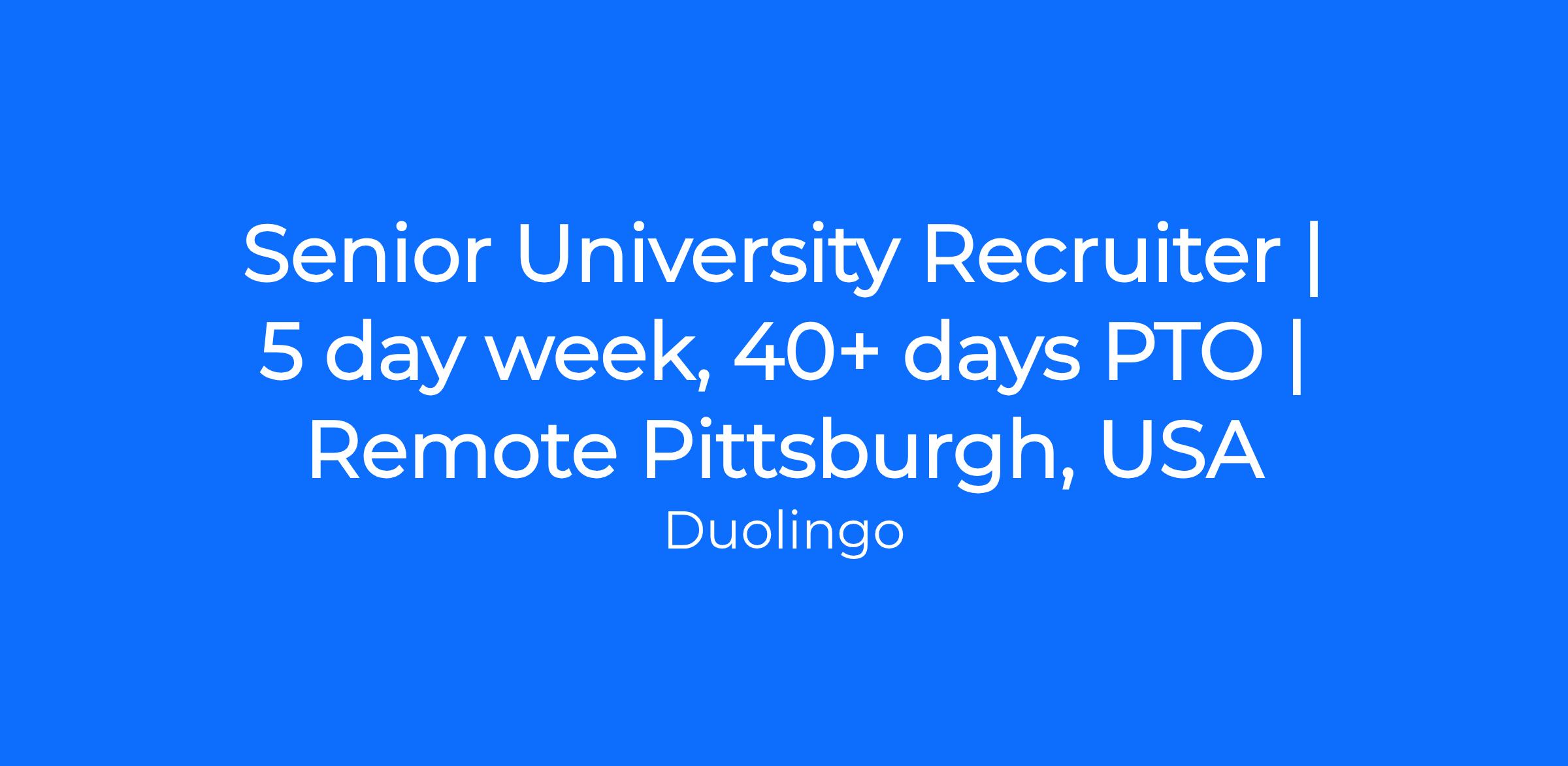 We’re looking for a Senior University Recruiter to lead high‑bar, full‑cycle hiring for early‑career talent at Duolingo. You will own strategy and execution across targeted functions, partner closely with hiring leaders, and shape programs and processes that strengthen our long‑term university pipeline. You’ll be a visible steward of our candidate experience and brand, help drive top‑of‑funnel initiatives with partners and events, and use data and market insights to continuously uplevel outcomes. This role sits on the University Recruiting team and collaborates tightly with University Programs, Talent Acquisition Operations, and cross‑functional partners.