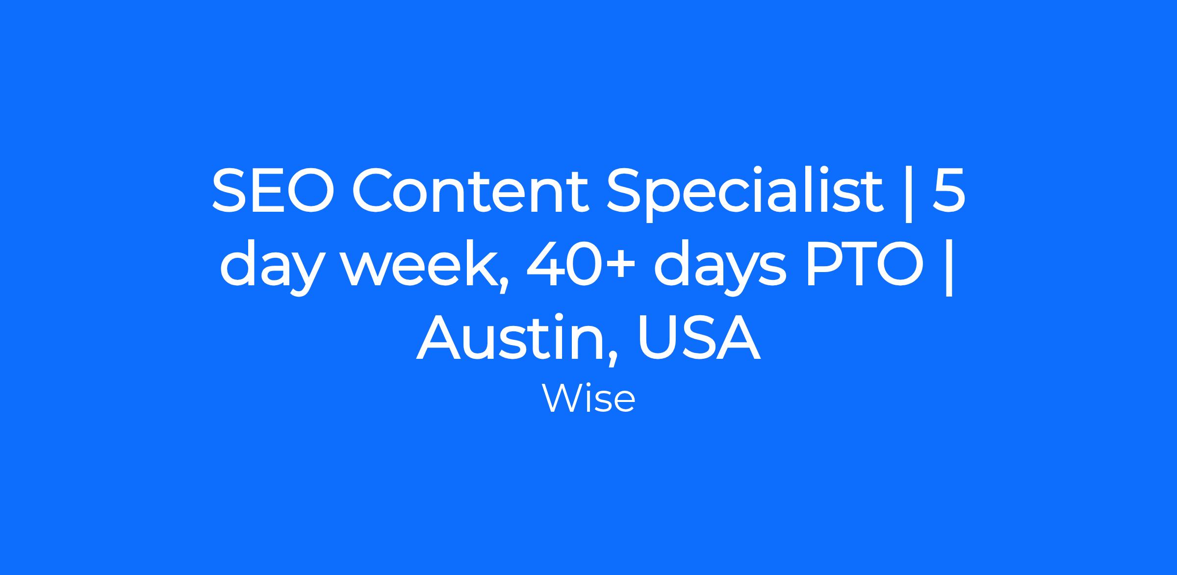 Operate in a high-potential search market, deepen your SEO skills, acquire new customers, work within an international team (52+ people from 20 countries), and occasionally travel to Wise offices globally.